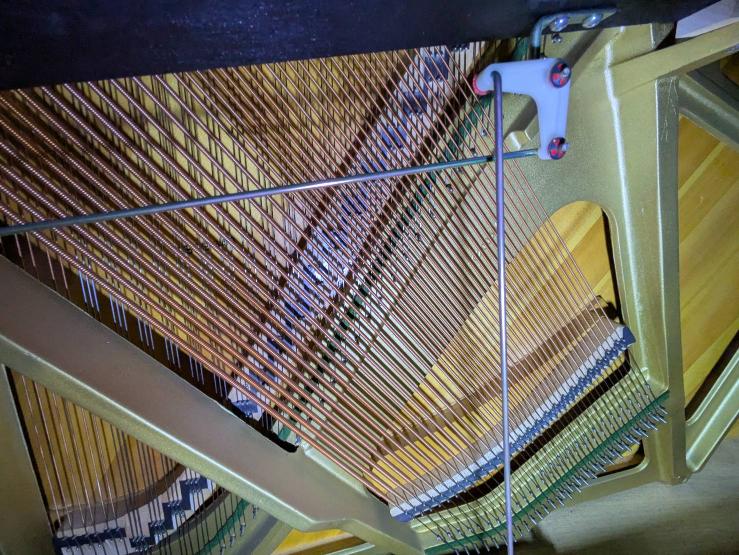 鍵盤の側面に一部黄ばみ汚れあり、響板支柱にシミ汚れあり、